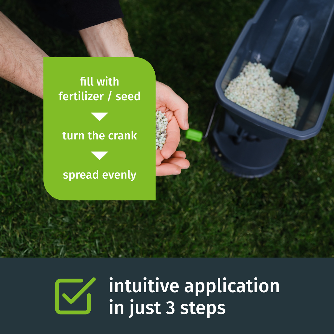 Onze handbediende meststof- en graszaadstrooier is het perfecte gereedschap om onze gazonverzorgingsproducten optimaal aan te brengen en lelijke vlekken, strepen of brandplekken te voorkomen. Hij is voor iedereen geschikt dankzij zijn lichte gewicht en gebruiksgemak. Met deze meststofstrooier voor de tuin kunt u rekenen op perfecte resultaten met minimale inspanning – want uw groene oase verdient alleen het beste.